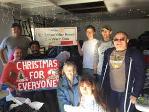 One Warm Coat is the signature community service project for our Rotary Club. This is our 29th Anniversary of the One Warm Coat drive. From 55 pieces gathered in a garage 28 years ago, it grew to 14,000 pieces collected. Charities and outreach organizations are counting on us this year more than ever! Thousands of items are collected each year and distributed to charities such as Christmas for Everyone. Bishop Ranch supports this project every year by giving us a warehouse space to house and sort the many bags collected. We appreciate also the support of the Alamo women’s Club, they organize a big drop off every November. It has been and continues to be a labor of love for our Rotary Club. We appreciate the support we receive from all of the generous businesses, schools, libraries, police and fire stations in our community that have, for 29 years, put out the boxes for collection. This project is one that touches many and we could not do it without the support of everyone involved.